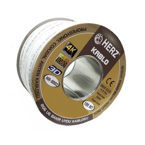 Herz RG6 U6 Uydu Anten Kablo Full Hd 4K – 100 Metre Beyaz
